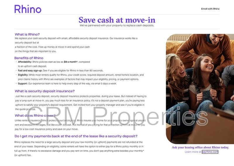 *The advertised rental price does NOT include a $40/month required enrollment into CRMs Resident Benefits Package.